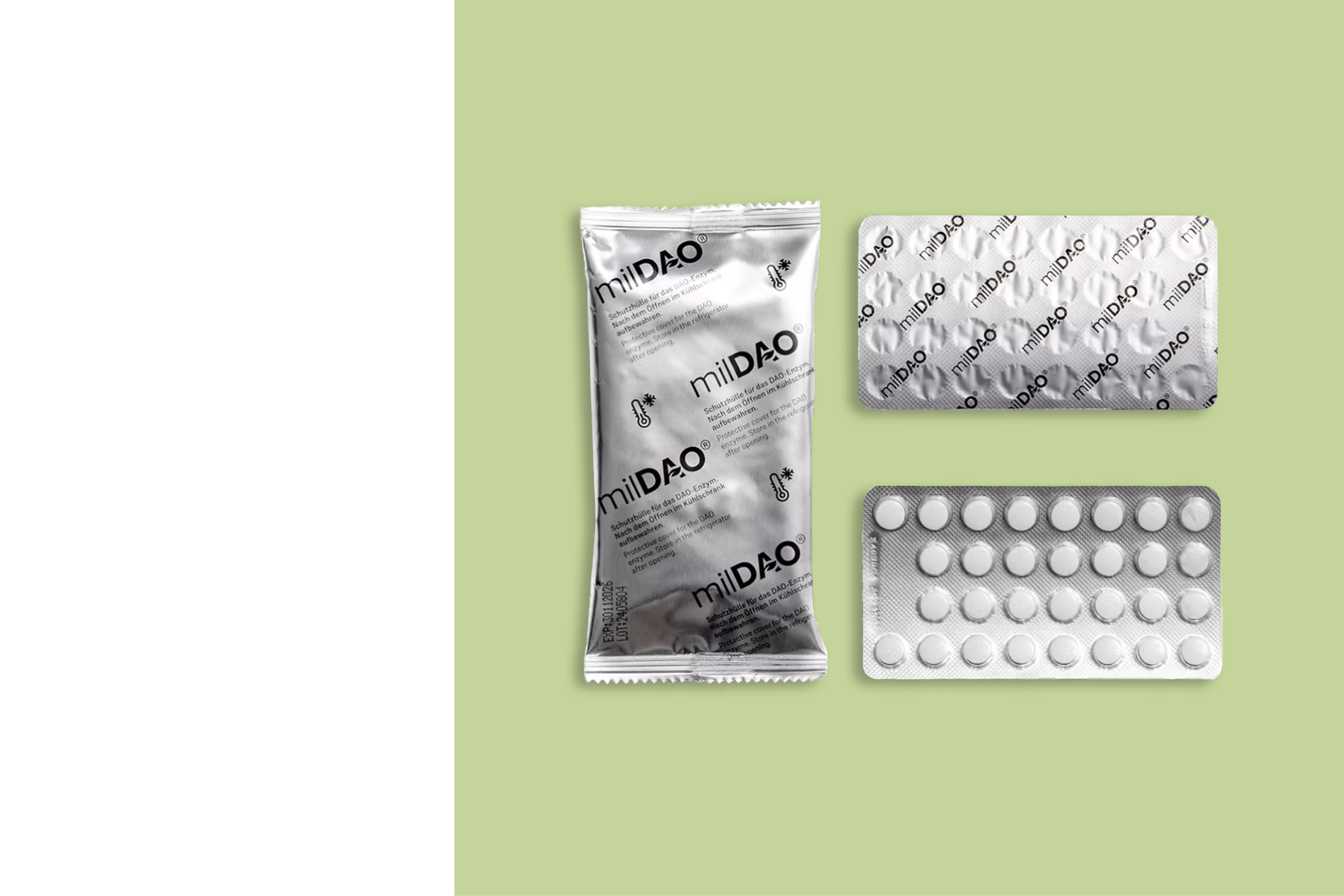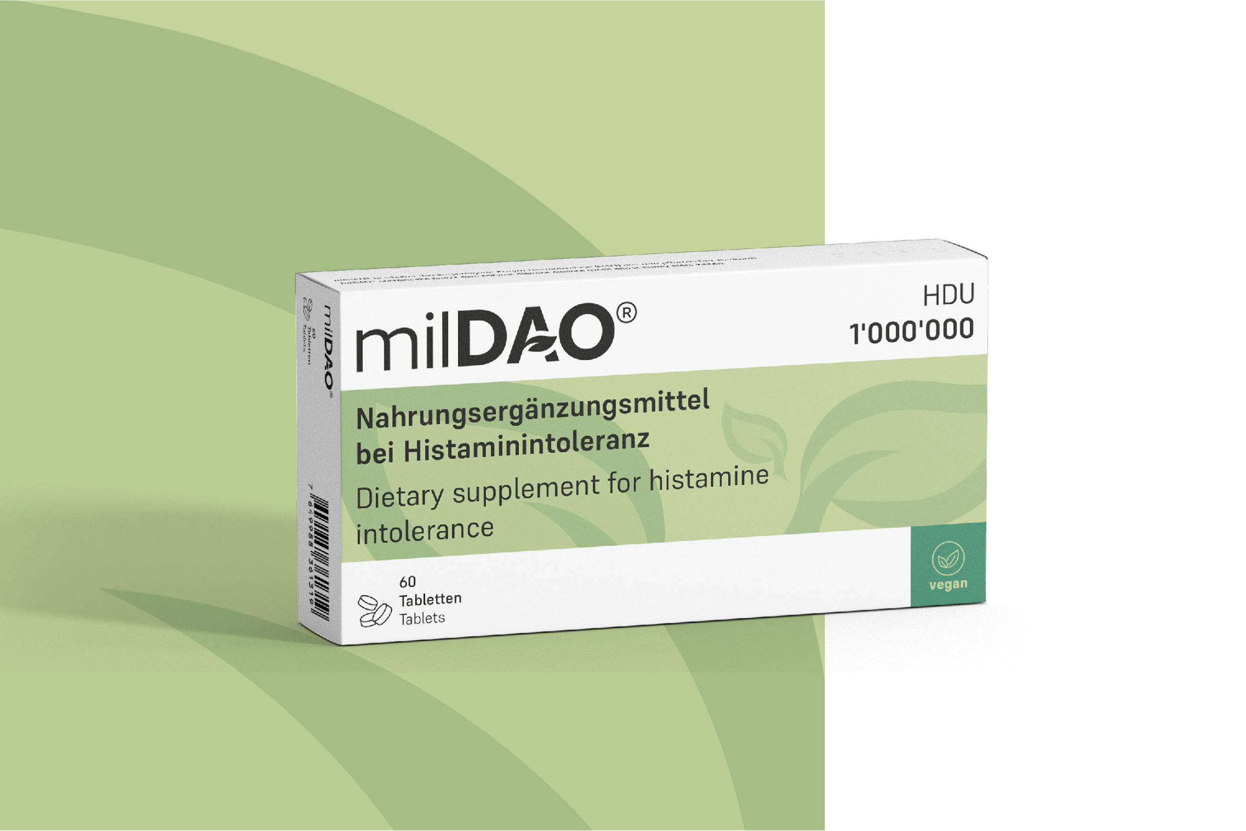 milDAO ist die rein pflanzliche Alternative bei Histaminüberschuss. DAO ist ein Enzym, das der Körper selbst bildet – und milDAO liefert es in einer Form, die den Körper nicht stört, sondern unterstützt. milDAO wurde entwickelt, um sanft und gezielt genau dort zu wirken, wo es gebraucht wird. Eine Unterstützung für alle, die mit Histaminintoleranz leben und einen natürlichen Weg zurück ins Gleichgewicht suchen.