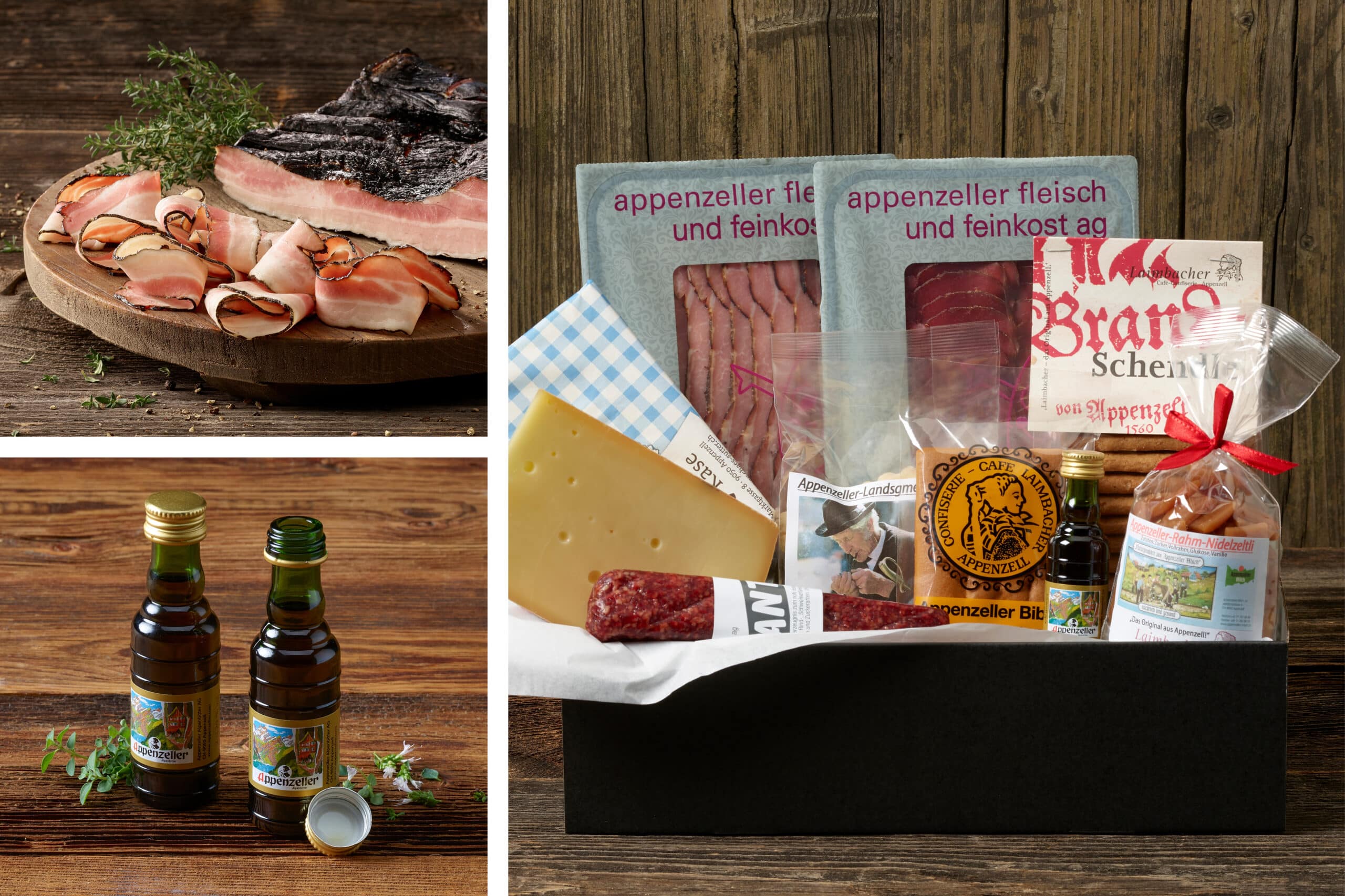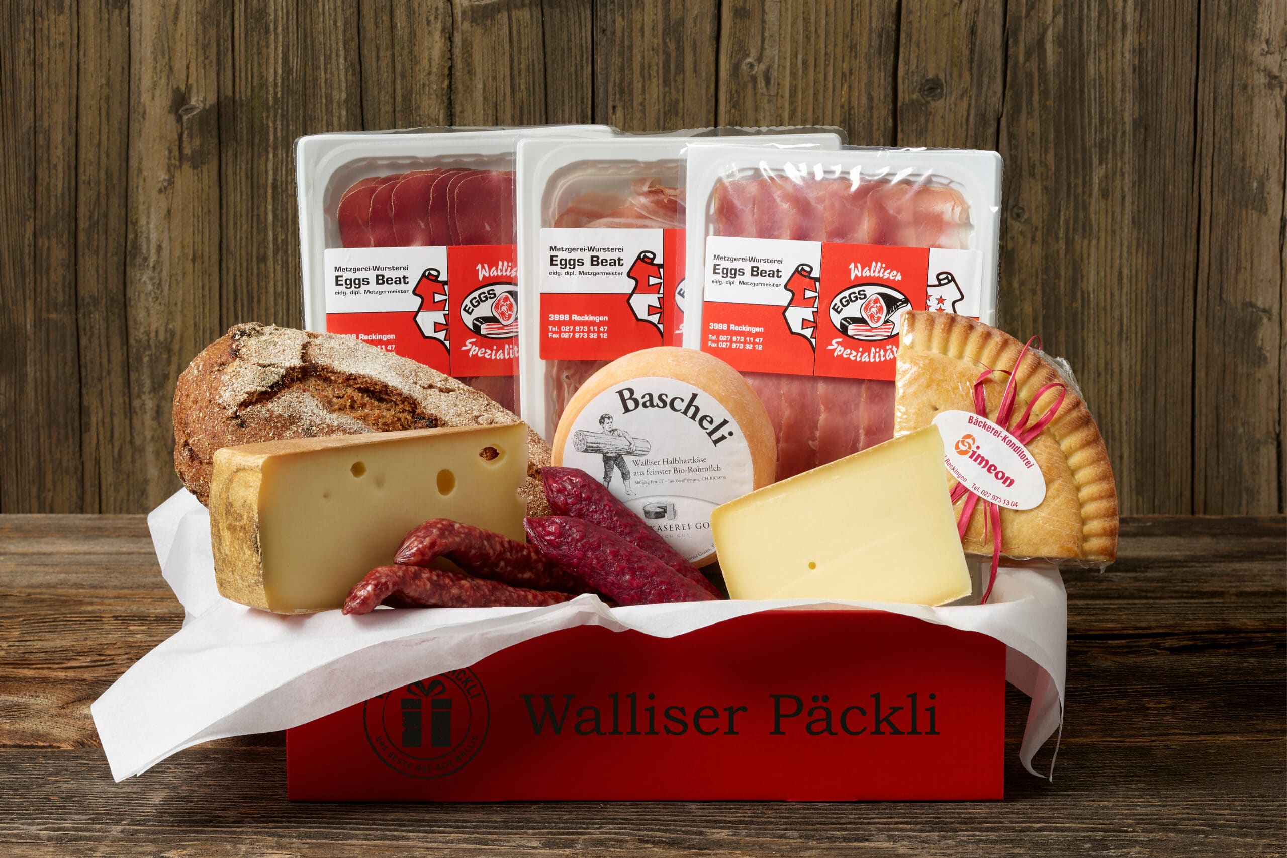 …in einem Päckli. So die bereits weiterentwickelte Vision von Fernando & Anna Carlen. Was einst mit dem «Walliser Päckli» begann – gefüllt mit regionalen und kulinarischen Produkten wie Trockenfleisch, Roggenbrot und mit Bergkäse – hat sich landesweit durchgesetzt.